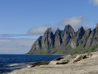 Andoya Weite ganz ebene Flächen und einzelne Berggruppen prägen das Bild der Insel Andoya. Richtig genießen können wir es aber nicht. Der Wind drückt uns fast wieder zurück. Die Ebenen sind mit Moos und Flechten bewachsen. Ein bisschen sieht es so aus, wie in Irland, nur dass die Berge etwas höher und steiler sind. Das Wetter wäre perfekt für den Campingplatz in Stave mit seinen 38 Grad heißen "Hot Pools" mit Blick auf das Meer. Nicht schlecht aber etwas mehr als 20 km wollen wir schon fahren. Anna entdeckt am Straßenrand Multebeeren. Diese Beeren wachsen nur in den arktischen Regionen dieser Welt und sind sehr beliebt bei den Einheimischen. Hier und da sieht man immer wieder Leute mit kleinen Eimern die Umgebung absuchen. Schafe am Rand sind ebenfalls eine hübsche Abwechslung. Bei der Fahrt über die Elektrogatter, die über die Straße verlaufen, wird uns allerdings ein bisschen mulmig. Eins knackt, wie eine Hochspannungsleitung. Wir verlassen die Insel über eine große Brücke. Das sind steile und oft sehr windausgesetzte Rampen, auf denen es kurz 50 Höhenmeter nach oben geht. Nach 68 km stellen wir unser Zelt auf und mit einem Schlag ist auch der Wind weg, was die Midges aus ihren Löchern treibt. Ganz toll... |